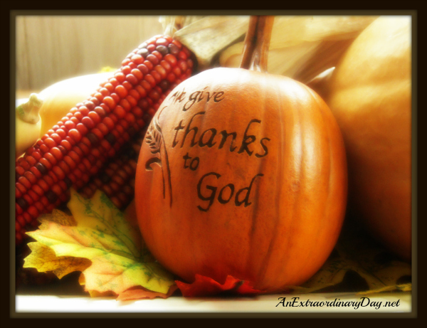 AnExtraordinaryDay.net - Thanksgiving - We give thanks to God - Harvest Display