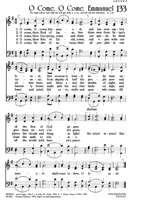 Another memory that is tender in my heart is singing the song, “O Come, O Come, Emmanuel.” I remember singing it in an old, ornate, and even gilded Lutheran church as a young child. It was a terribly mournful sounding song to me then. It still is. Having lived a few more years….seeing the pain of friends going through divorce, life-threatening illness, and losing jobs…. seeing a country whose capitol is no longer recognized….and knowing of the cries of those who are captive in human trafficking, and even today, slavery…I understand, more than ever, the need for hope. That old hymn sung in a minor key is a cry for release. And it is as real as it was when the song was written in the 12th century.