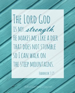 As we enter this New Year there is no doubt, we will face unexpected challenges, disappointments, and heartaches. I wish it weren't so, but the Bible tells us to expect it. That doesn't mean that we need to live in fear, looking around every corner, or expecting the "other shoe to drop." We need to look forward with great expectation. God has great things planned for us. He knows where we'll be going, what we'll be facing, and even our opposition. He will provide us with every ounce of strength we need. He wants us to walk victoriously, without stumbling or wavering. The Lord God is my … [Read more...]