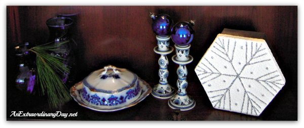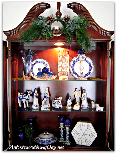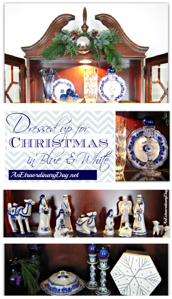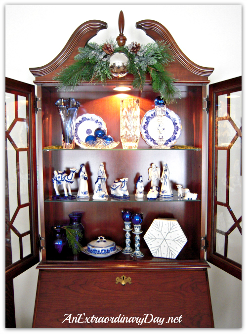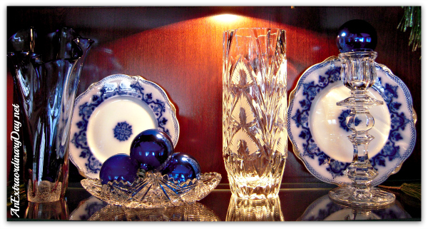 AnExtraordinaryDay.net | Dressing up the Secretary in Blue & White for Christmas | Christmas Decor ideas | crystal & china